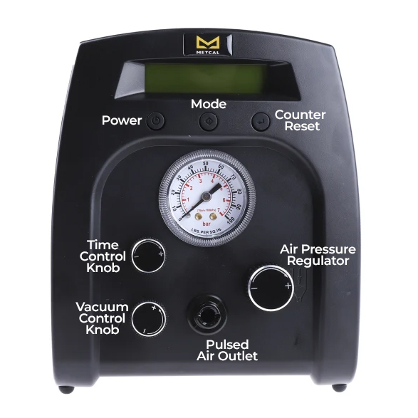 The Metcal DX-250 Precision digital dispenser offers excellent value for money with exceptional accuracy and repeatability often only associated with higher end systems seen today. The DX-250 includes a vacuum pull back for reducing waste lower viscosity materials, alongside a rotary time knob for easy use and setup.